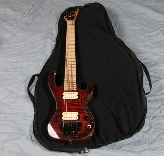 CDH Custom Guitars TS-622, (Travel Shredder) Electric Guitar Custom handmade full scale travel guitar, with a compound radius fingerboard, a Floyd Rose Tremolo and a unique slide-out waist bout, giving it the playability and comfort of a full sized custom guitar as well as compact storage and portability. Specs: Price…