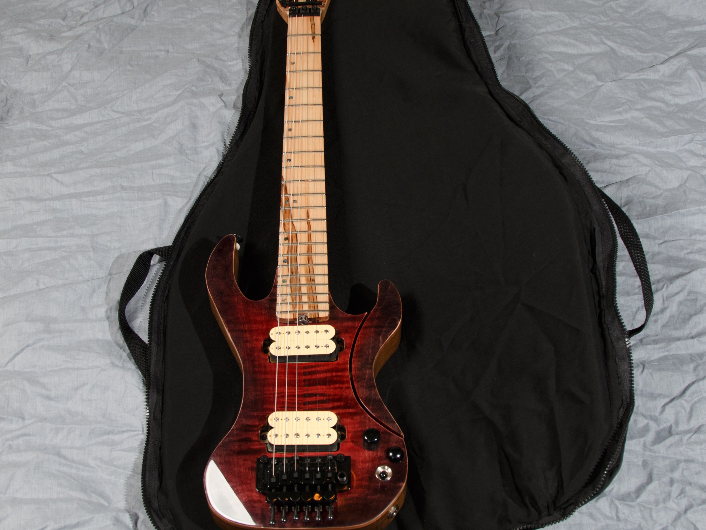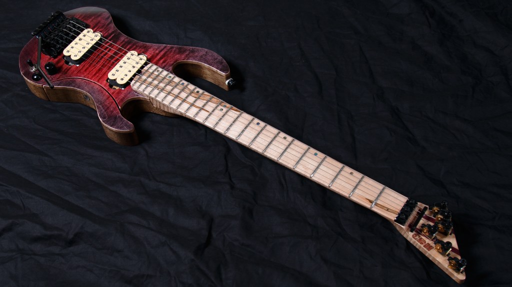 This comfortable playing guitar with its superior action and Floyd Rose whammy, is a traveling shredder’s dream!
